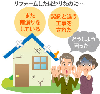 またもう一つのケースとして、リフォームを行った部分から雨漏りが生じてしまった、しかし依頼した業者に確認を取ったところ施工した部分に問題はない!と補修を断られた…