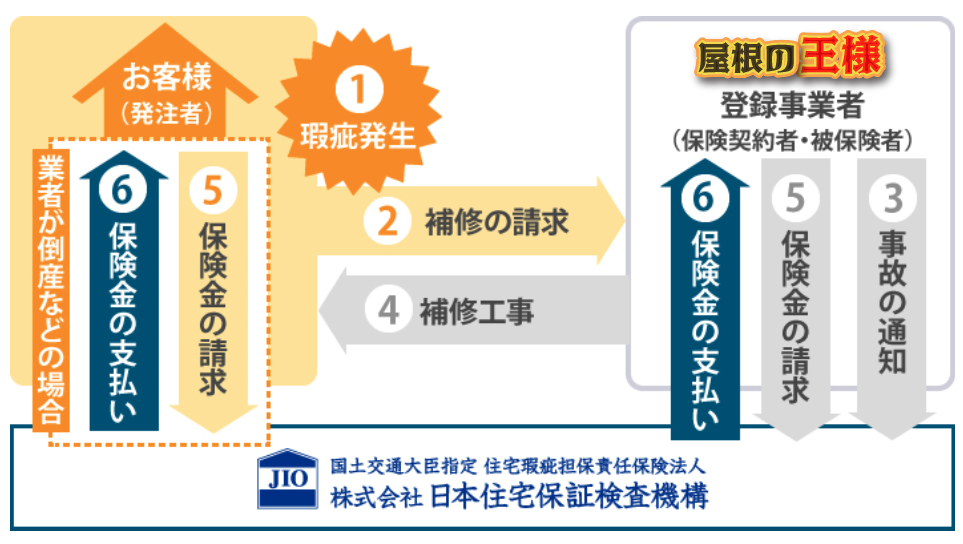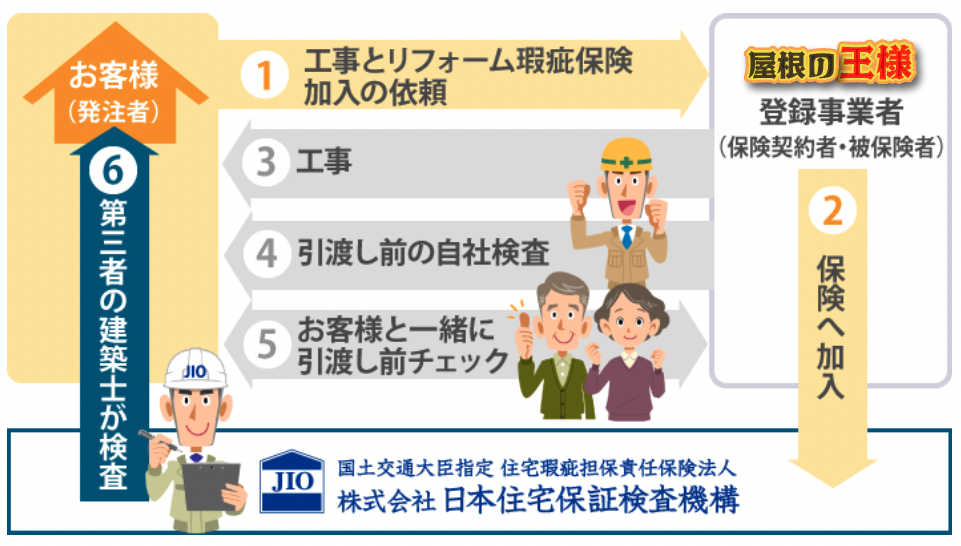 屋根の王様と工事品質と施工保証、第三者機関による検査と保証、石橋を叩いて渡る体制です。保証やリフォーム瑕疵保険についての詳細はお気軽にお問い合わせください。