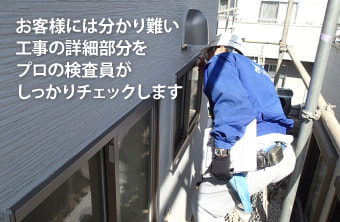 工事直後の雨漏りが起きないか?施工に問題がないか?を厳しくチェックすることでリフォーム工事の品質を向上、結果工事直後の安心感が得られます。