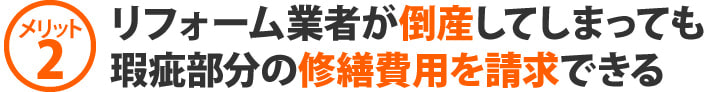 ●リフォーム会社が倒産してしまった後に瑕疵が発生しても瑕疵部分に関しての請求を保険会社に出来ます。