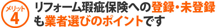 ●そもそもリフォーム瑕疵保険に加入できるのは厳正な審査を通過した登録事業者のみです。この点で安心して任せる業者なのかを判断することも可能です。