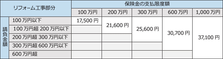 保険料(単位:円、非課税):リフォーム工事のみ行う場合