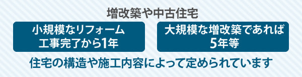 増改築や中古住宅は経年劣化等も関係することから10年の瑕疵担保責任は義務付けられていませんが、小規模なリフォームであれば工事完了から1年、大規模な増改築であれば5年等、住宅の構造や施工内容によって定められています。またリフォーム会社も独自の規定を設け施工保証等がありますので、工事を依頼する前に前もって確認しておくと安心に繋がります。