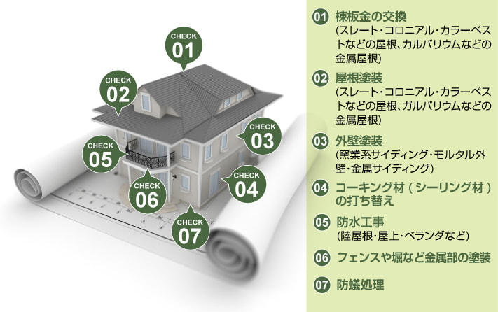 木、金属、コンクリート、ガラス…、お住まいにはさまざまな材料が使われており、同じ経過年数であってもそれぞれの傷み具合は全く違います。