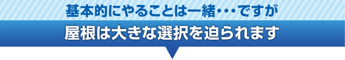 屋根カバーか屋根葺き替えを選択する時期に来ています。雨漏りしているわけでもないのに屋根葺き替えとお思いの方もいるでしょうが、屋根材の限界が近づいてきているので早めに対処した方がいいでしょう。