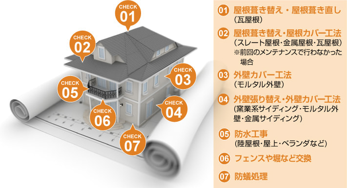 かつては新築だったお住まいも年月を経れば、どんなに大事にしていてもいろいろなところが傷んできます。定期的なメンテナンスが必要になってくるのです。